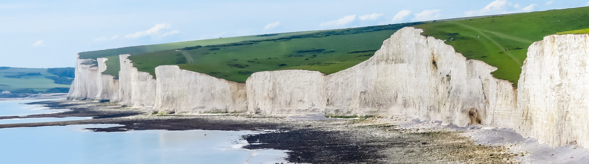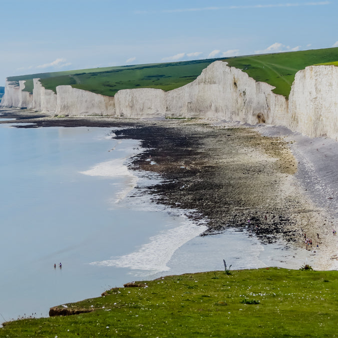 White chalk cliffs, Seven Sisters National Park in East Sussex England.