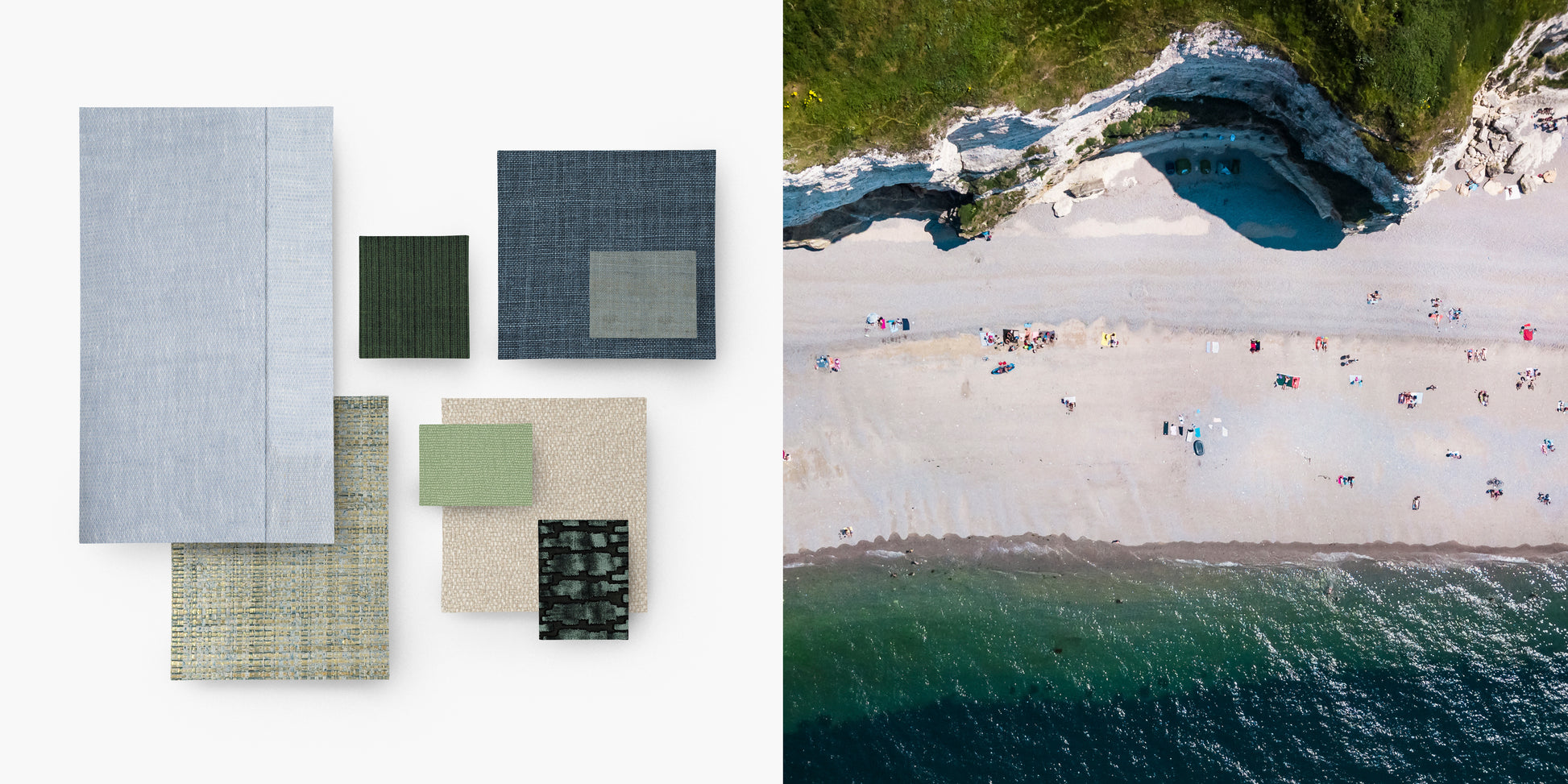 Crisp limestone cliffs slicing into the dark blue azure sea in Etretat, France.