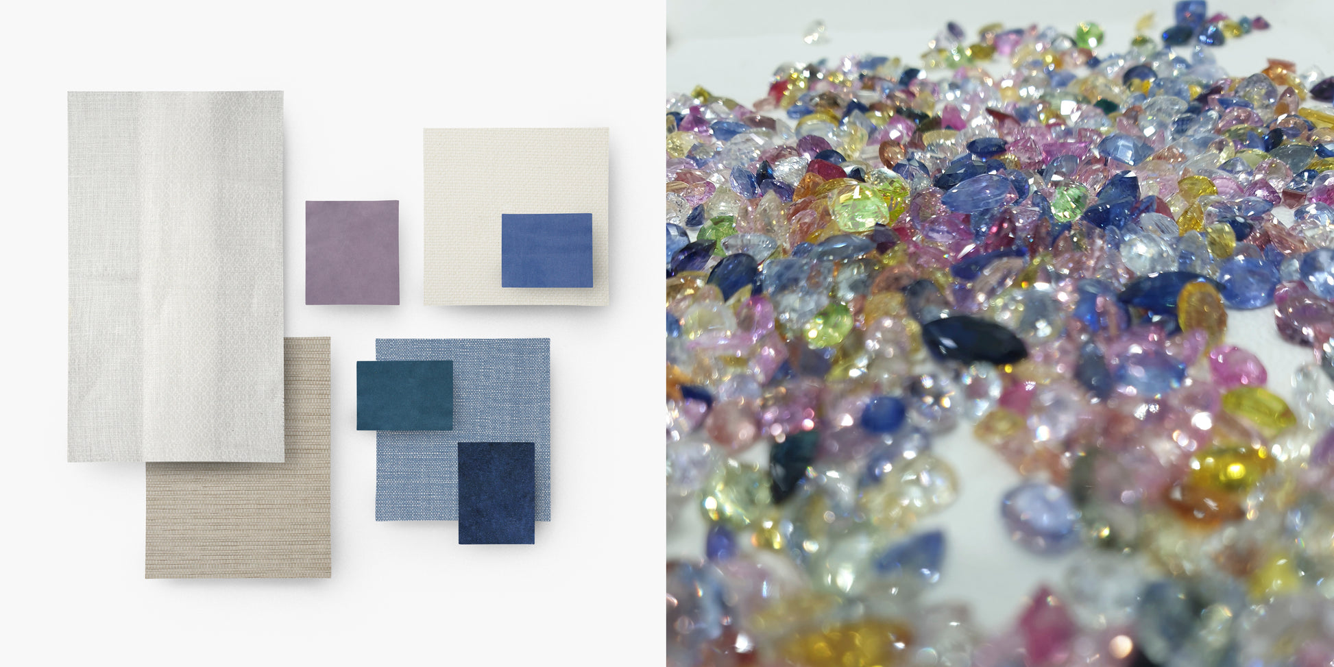 A loose collection of semi-precious stones inspire this pastel and watery composition.