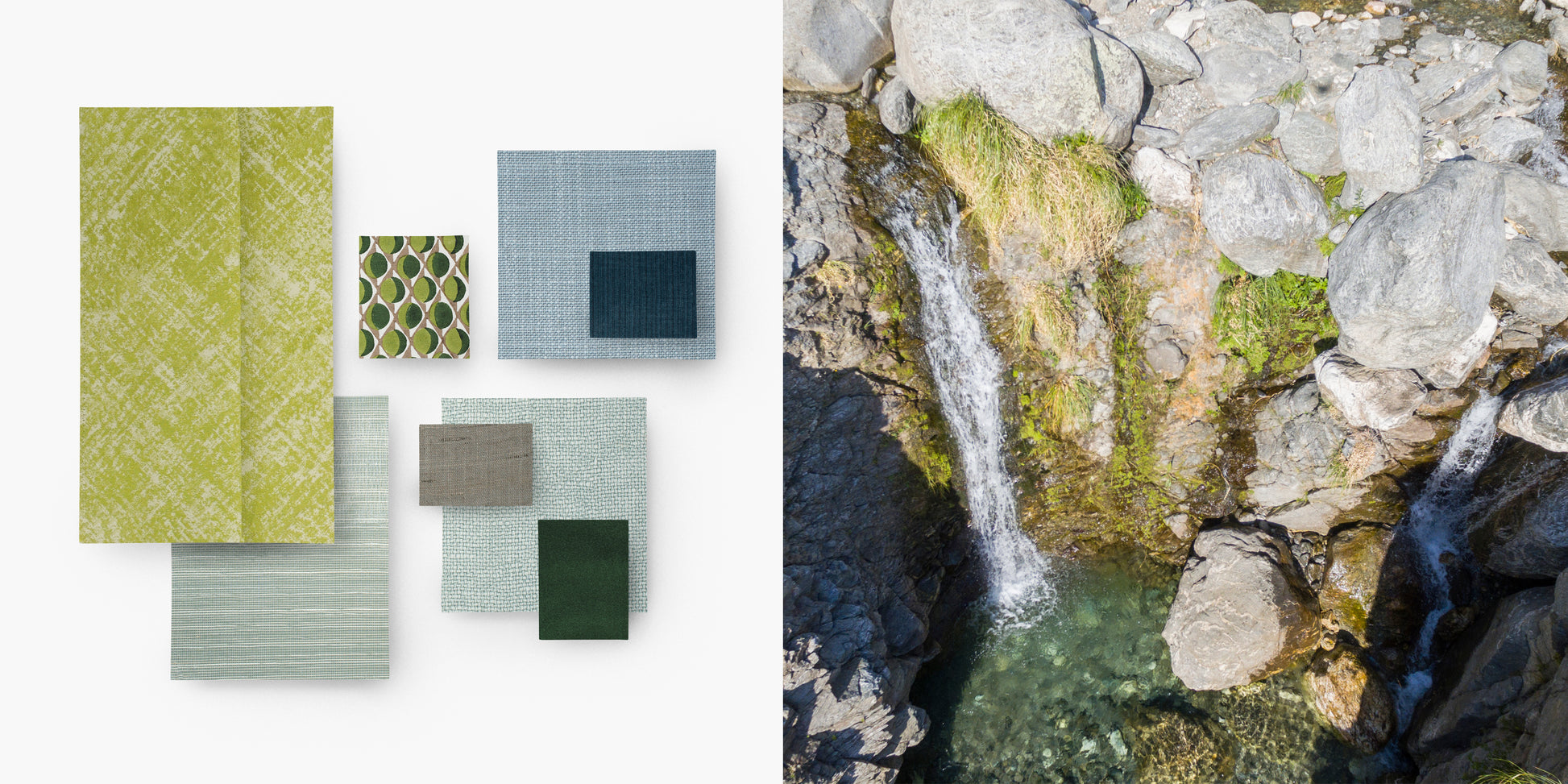 Oasis of falling water with moss and grasses clinging to a rock wall at a nature reserve in Argentina.