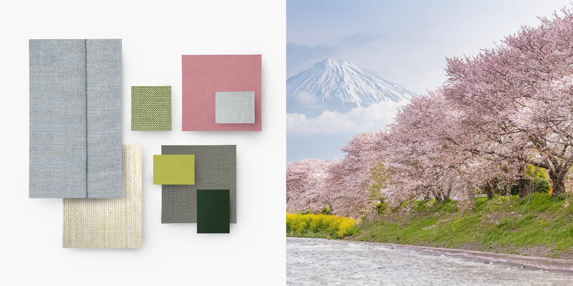 A crisp and upbeat palette of the Mount Fuji cherry blossoms.