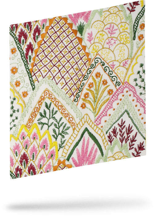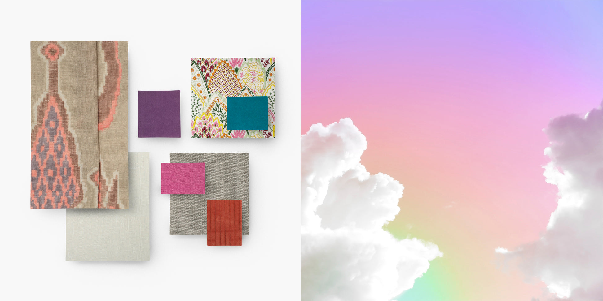 Cloudscape in technicolor hues remind us of exotic culture and traditions