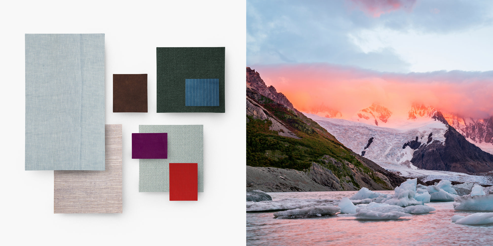Cerro Torre's orange and violet pastels combine with icy greys and charred browns.