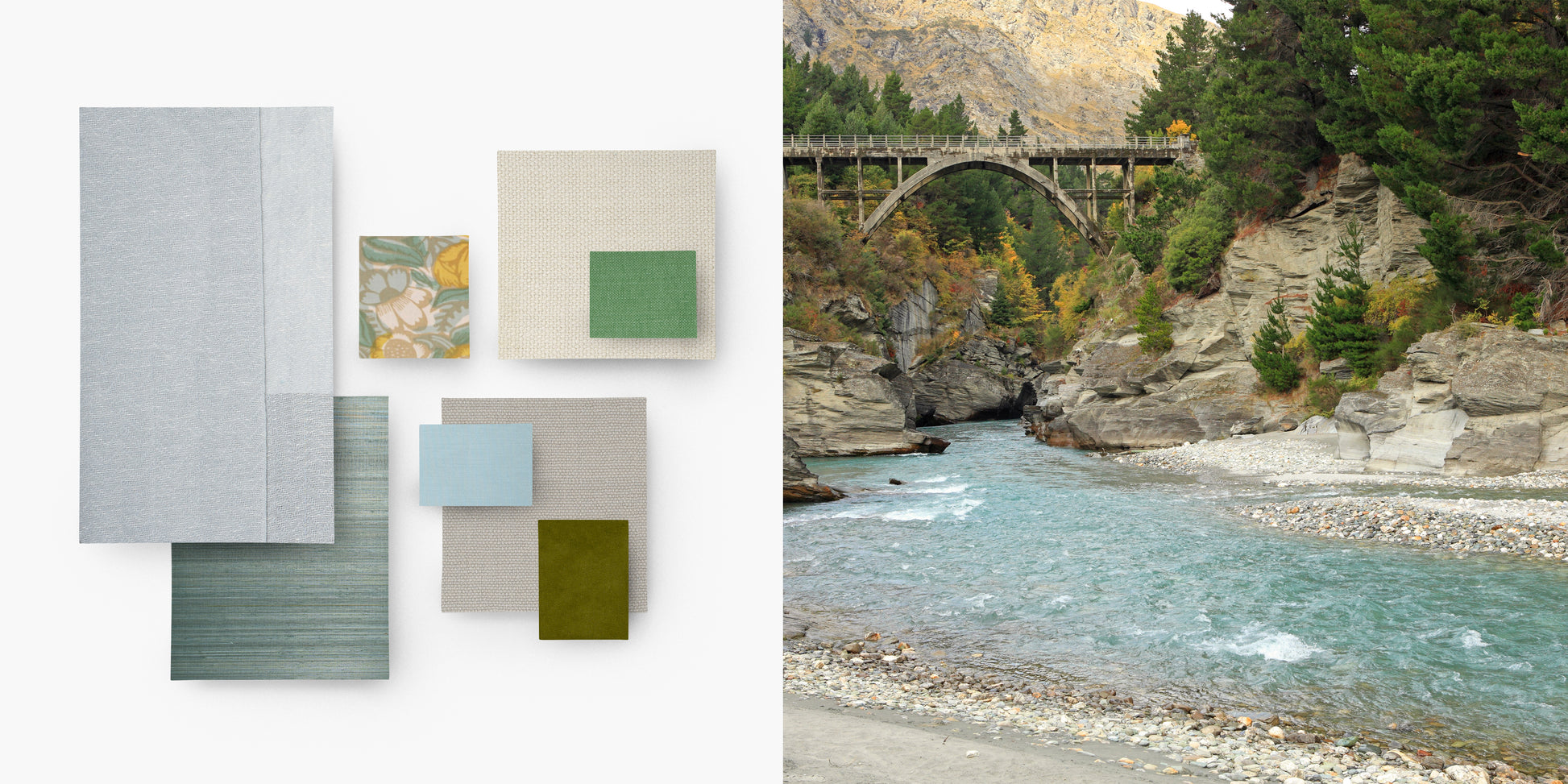 Shallow rushing river of Queenstown South Island, New Zealand revealing rippling textures and cool colors of early Fall