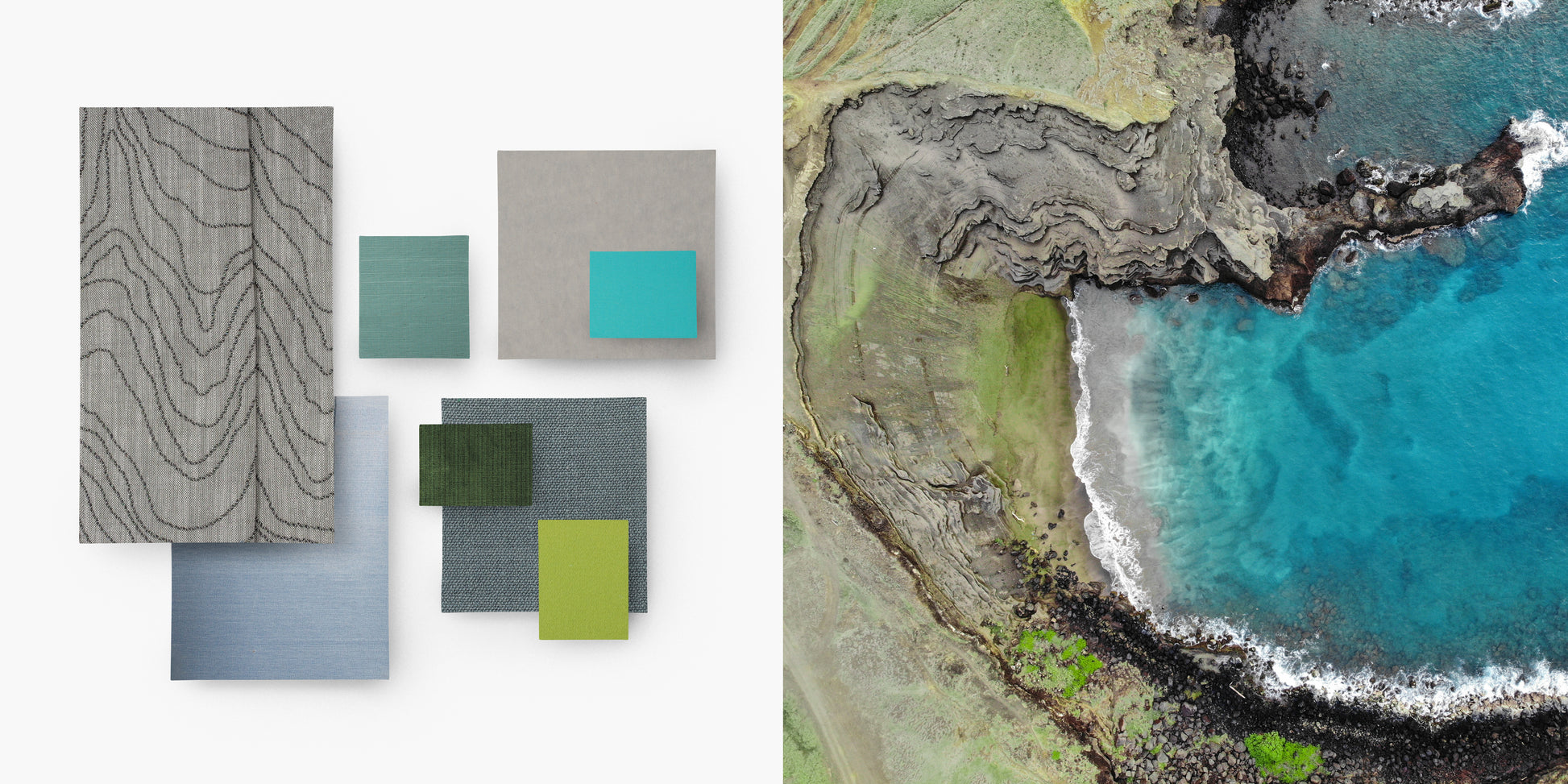 The Big Island of Hawaii contrasts azure blue waters with charcoal cliffs and vivid green ground cover.